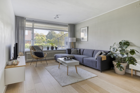 De woonkamer geeft toegang tot het balkon op het zuidwesten. Hier is het heerlijk vertoeven met een heerlijk vrij uitzicht.